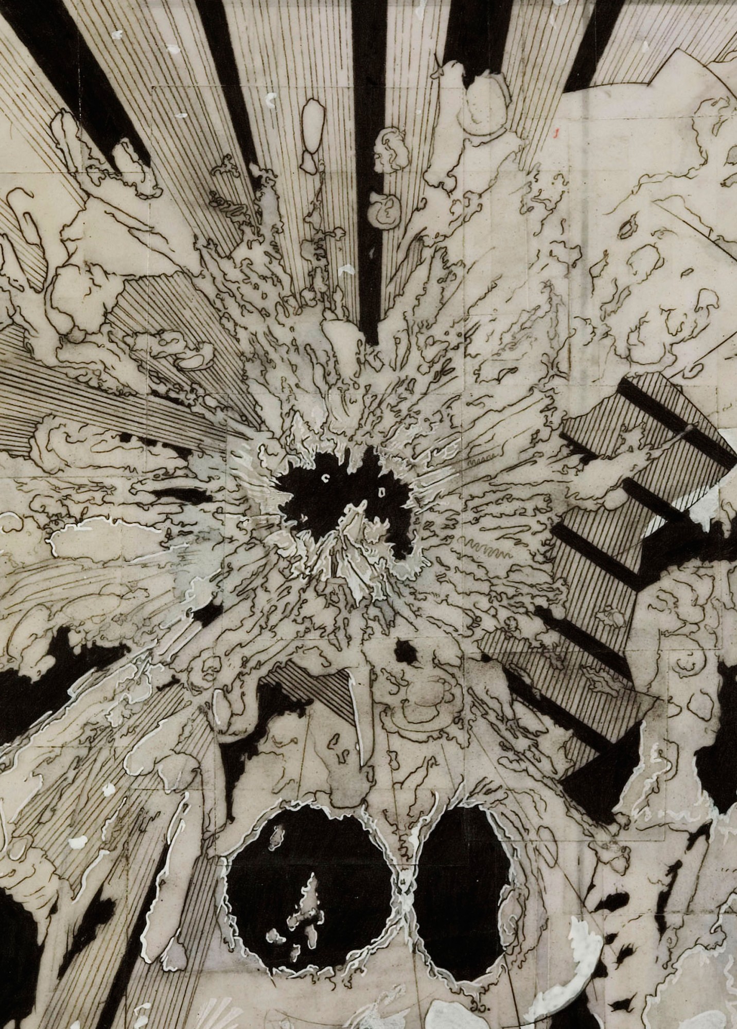 Graphite, activated carbon and pressure sensitive tape on layered paper